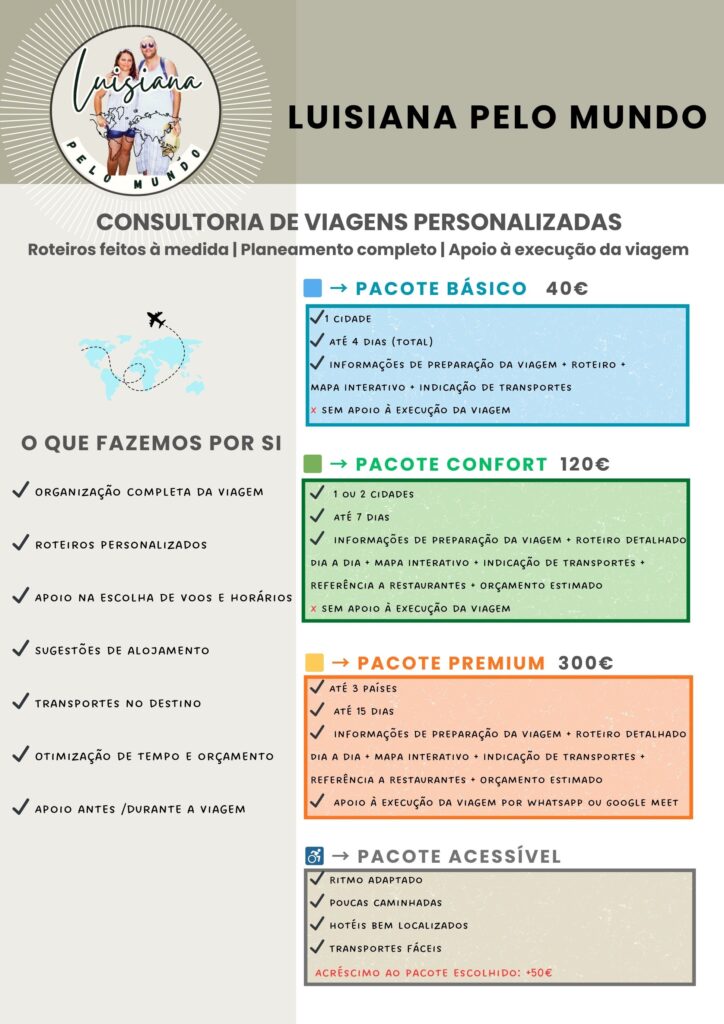 Aqui, cada viagem é criada à medida de cada pessoa — dos seus gostos, do seu orçamento, da sua idade, da sua condição física e do tipo de experiências que realmente fazem sentido.
