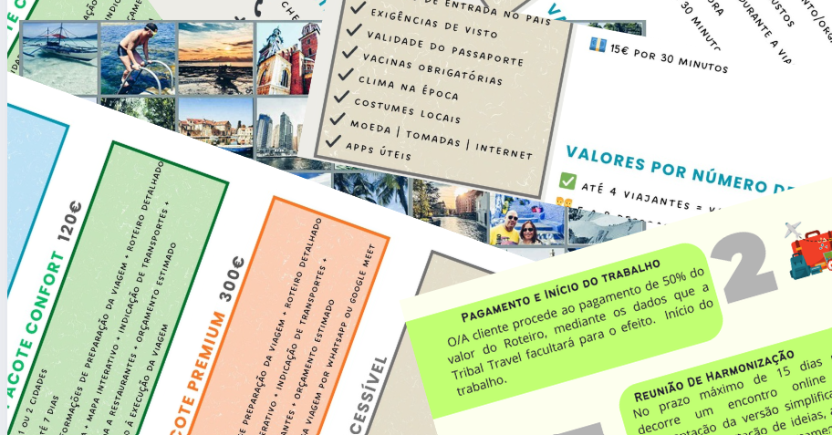 A consultoria não é uma agência de viagens. É um serviço completamente personalizado, onde o viajante recebe: