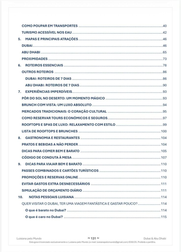 Este guia, escrito em português, foi criado para quem quer viajar de forma independente, segura e organizada para o Dubai e Abu Dhabi.